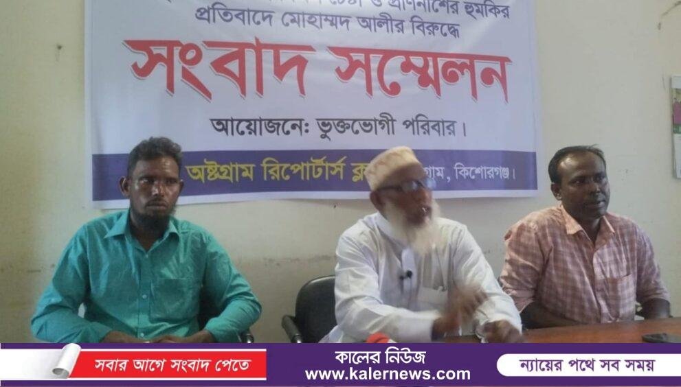 জমি সংক্রান্ত বিরোধের জের ধরে কিশোরগঞ্জ জেলা পুলিশ সুপার বরাবর লিখিত অভিযোগ দায়ের করায় মো. হরমুজ মুন্সী (৬৫) নামে এক কৃষকের পরিবারকে প্রাণনাশের হুমকি ও তাদের জমি দখলের চেষ্টার অভিযোগ উঠেছে প্রতিপক্ষ মোহাম্মদ আলী (৬৫) ও তার ভাগিনা এলাজ উদ্দিন (৫০) নামে দুই ব্যক্তির বিরুদ্ধে।