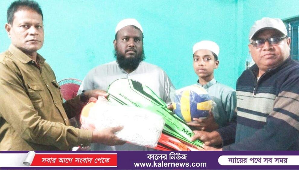 জয়পুরহাটের পাঁচবিবি প্রেসক্লাবের ক্রীড়া বান্ধব সাধারণ সম্পাদক সজল কুমার দাস উপজেলার উচাই ইসলাহুল উম্মাহ কওমী মাদ্রাসা ও এতিমখানায় কোরআনের হাফেজ শিক্ষার্থীদের মাঝে খেলার সামগ্রী বিতরণ করেন। সম্পাদক মহদোয় নিজস্ব অর্থায়নে কোরআনের পাখিদের শরীর ও মন সুস্থ সবল রাখতে নেট সহ ভলিবল ও ব্যাটমিলটন প্রদান করেন। রোববার সকালে প্রেসক্লাব কার্যালয়ে উচাই এতিমখানার মুহতামিম হাফেজ মাওলানা মোঃ মুজাহিদুল ইসলাম নীরব ও শিক্ষার্থীদের হাতে এসব ক্রীড়া সামগ্রীগুলো তুলে দেন।