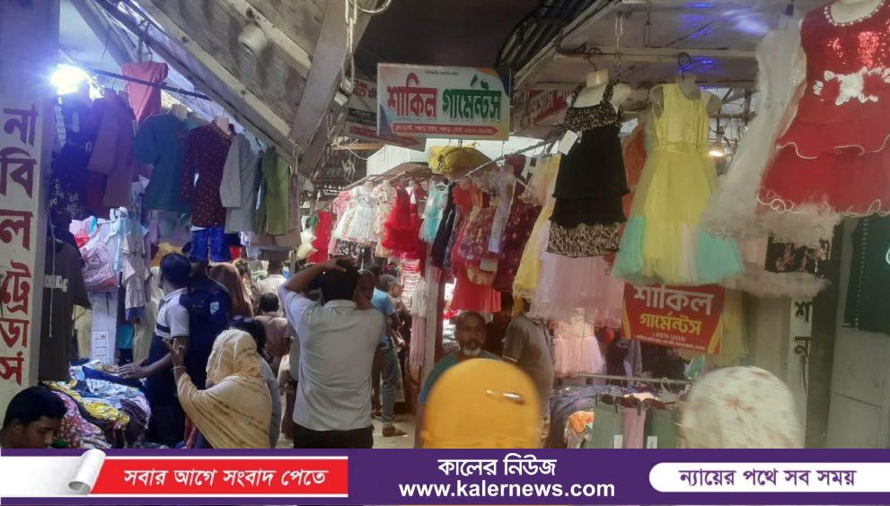 ঈদ উপলক্ষ্যে এবার বেশ কিছু নতুন ডিজাইনের কাপড় বাজারে এনেছে পারপেল, ফ্যামিলি ফ্যাশন, ইমা গার্মেন্টস, শম্পা গার্মেন্টসহ বেশ কয়েকটি তৈরি পোষাকের শোরুম। এছাড়া ছোট শিশুদের সুতি পোষাক নিয়ে এবার ক্রেতাদের দৃষ্টি কাড়ছেন সম্প্রতি উদ্বোধন হওয়া বেবিশপ। সমানতালে অন্যান্য কাপড়ের দোকান গুলোতে বিক্রি হচ্ছে শাড়ি, থ্রিপিস ও তৈরি পোষাক।