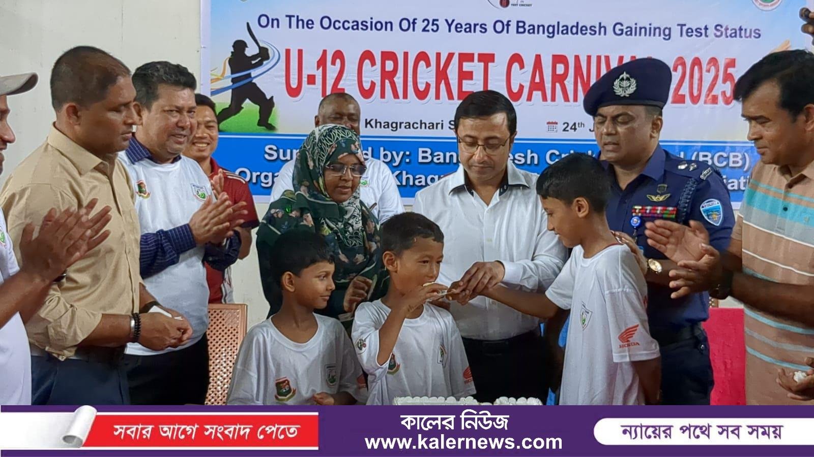 খাগড়াছড়ি প্রতিনিধি।। বাংলাদেশ ক্রিকেট টেস্টে – ২৫ বছর স্ট্যাটাস পূর্তি উপলক্ষ্যে খাগড়াছড়িতে অনুর্ধ্ব-১২ ক্রিকেট কার্নিভাল অনুষ্ঠিত হয়েছে। মঙ্গলবার (২৪ জুন)