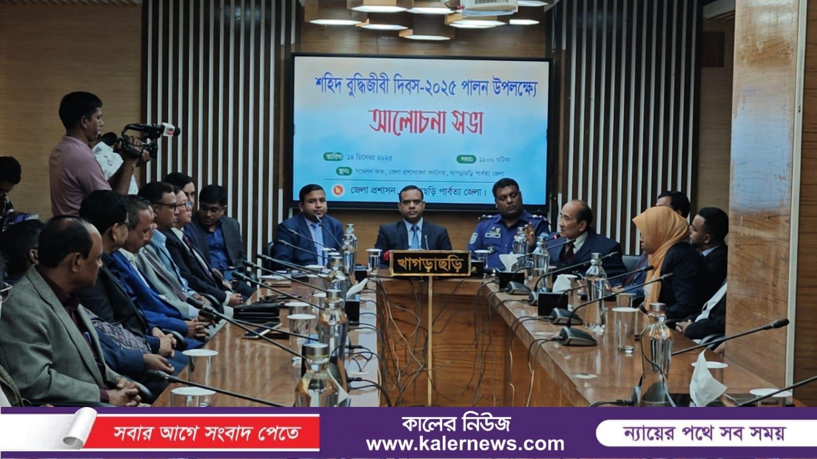 ছোটন বিশ্বাস, খাগড়াছড়ি প্রতিনিধি।। খাগড়াছড়িতে শহীদ বুদ্ধিজীবি দিবস উপলক্ষ্যে আলোচনা সভা অনুষ্ঠিত হয়। রবিবার (১৪ ডিসেম্বর) সকালে খাগড়াছড়ি জেলা প্রশাসনের