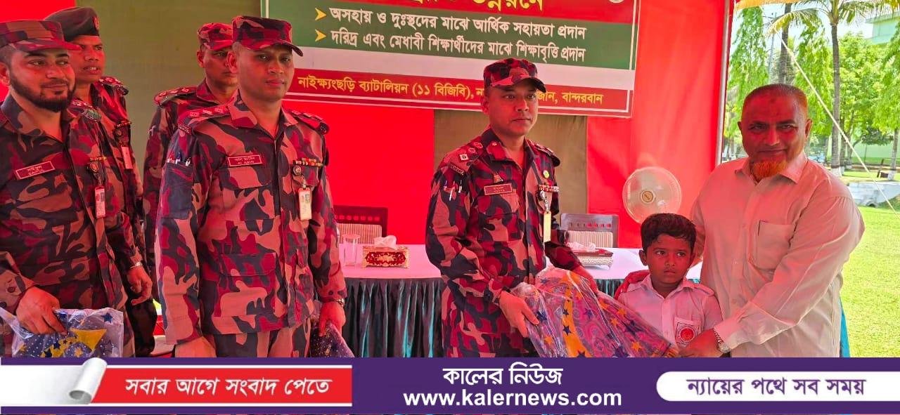 জাহাঙ্গীর আলম কাজল,নাইক্ষ্যংছড়ি, (বান্দরবান) প্রতিনিধি: বান্দরবানের নাইক্ষ্যংছড়ি বিজিবি কর্তৃক গরীব, অসহায় দুস্থদের মাঝে আর্থিক অনুদান,মেধাবী শিক্ষার্থীদের নগদ অর্থ সহায়তা প্রদান