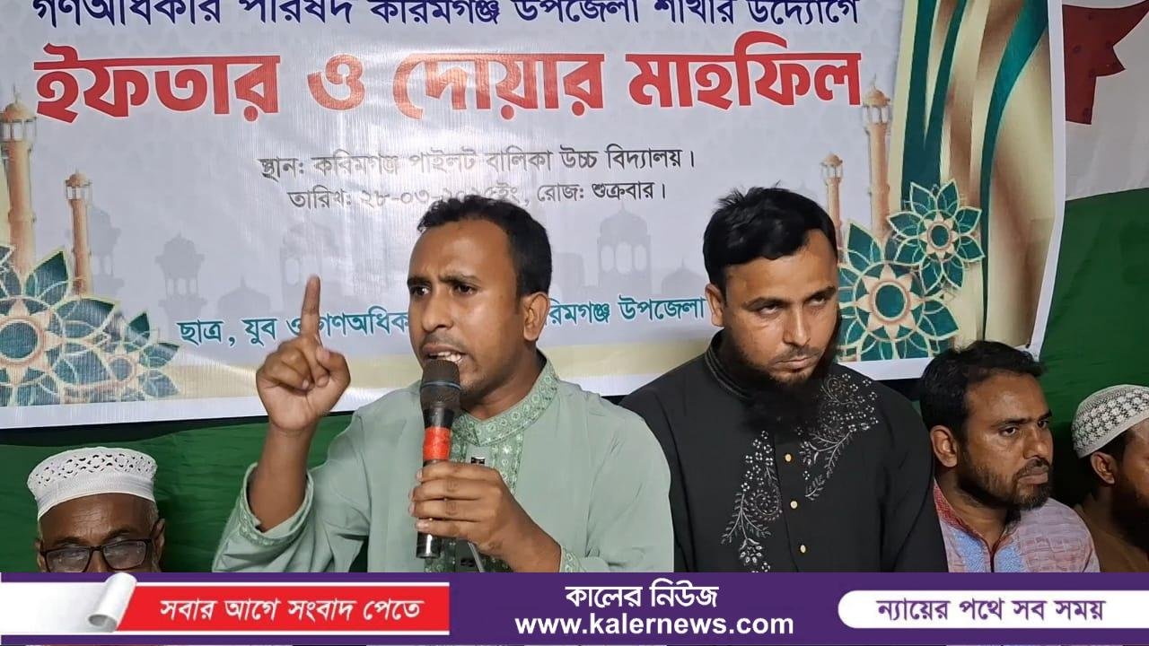 আব্দুর রউফ ভুঁইয়া,কিশোরগঞ্জের প্রতিনিধি-গণঅধিকার পরিষদ,করিমগঞ্জ উপজেলা শাখার উদ্যোগে ইফতার ও দোয়া মাহফিল অনুষ্ঠিত হয়। শুক্রবার ২৮শে মার্চ করিমগঞ্জ বালিকা উচ্চ