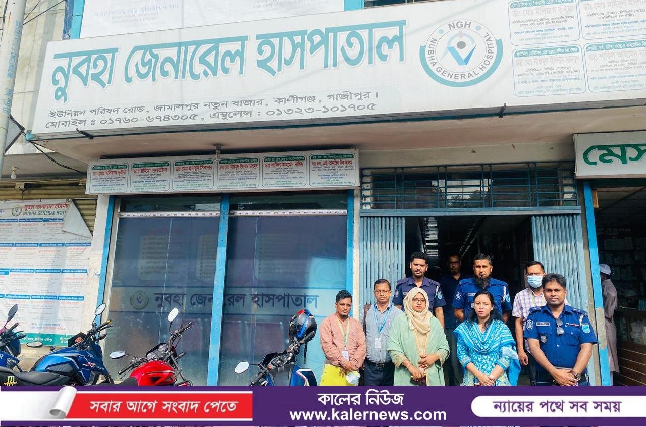কালীগঞ্জ (গাজীপুর) প্রতিনিধি-গাজীপুরের কালীগঞ্জ উপজেলার জামালপুর বাজারে রোববার (৯ আগস্ট) দুপুরে ভ্রাম্যমান আদালত পরিচালনা করে নুবহা জেনারেল হাসপাতালকে এক লাখ
