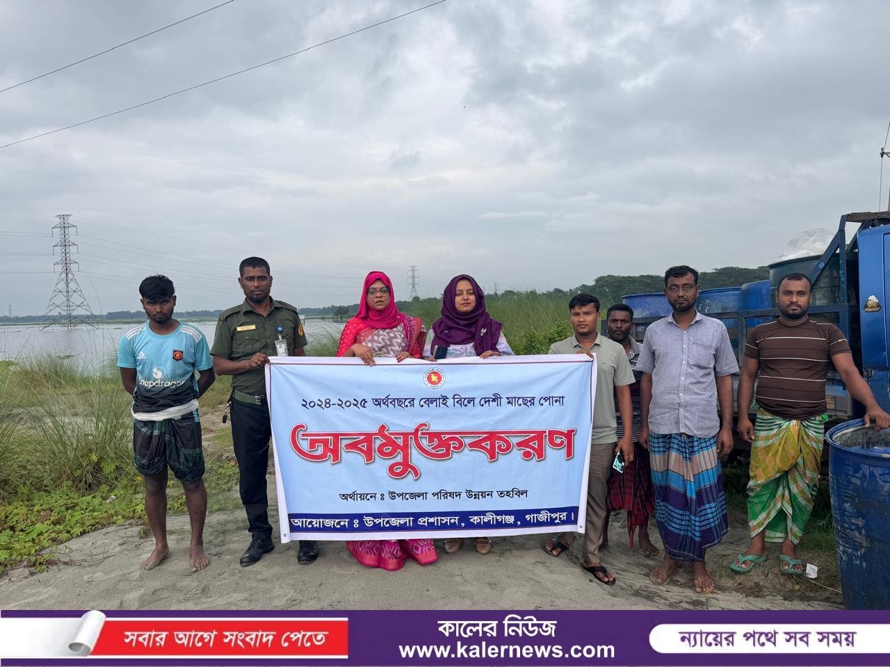 কালীগঞ্জ (গাজীপুর) প্রতিনিধি-গাজীপুরের কালীগঞ্জ উপজেলার তিনটি ইউনিয়নের বিভিন্ন এলাকার বিভিন্ন মাছের পোনা অবমুক্ত করা হয়েছে। উপজেলা প্রশাসনের আয়োজনে ২০২৪-২০২৫ অর্থবছরে
