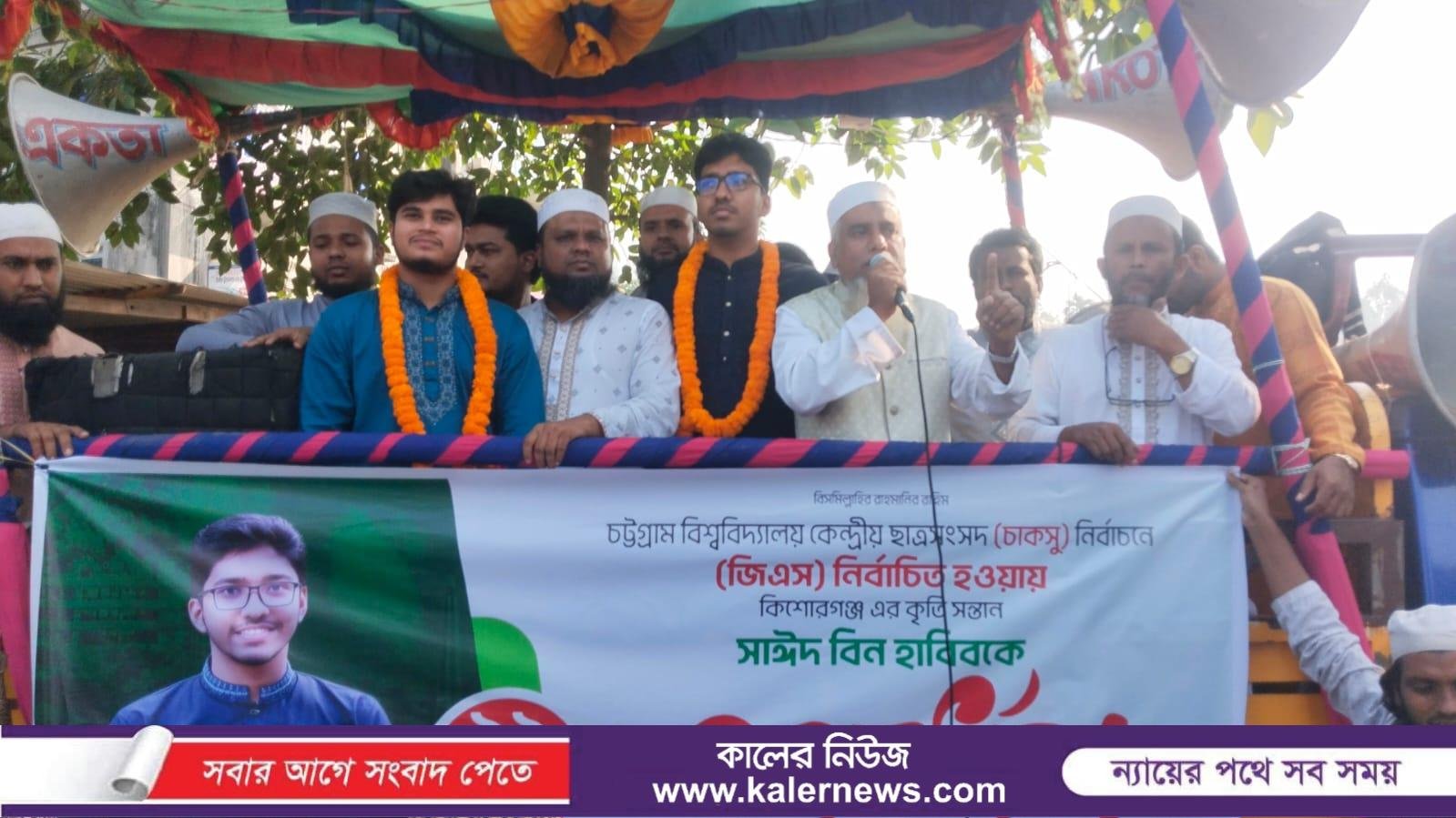 মুহাম্মদ কাইসার হামিদ, কুলিয়ারচর (কিশোরগঞ্জ): কিশোরগঞ্জের কৃতি সন্তান সাঈদ বিন হাবিব চট্রগ্রাম বিশ্ববিদ্যালয় কেন্দ্রীয় ছাত্র সংসদ (চাকসু) নির্বাচনে জিএস নির্বাচিত