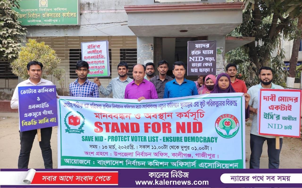 কালীগঞ্জ (গাজীপুর) প্রতিনিধি-`STAND FOR NID, SAVE NID-PROTECT VOTER LIST-ENSURE DEMOCRACY` প্রতিপাদ্যে কেন্দ্রীয় কর্মসূচি অংশ হিসেবে সারাদেশের মত গাজীপুরের কালীগঞ্জে জাতীয়