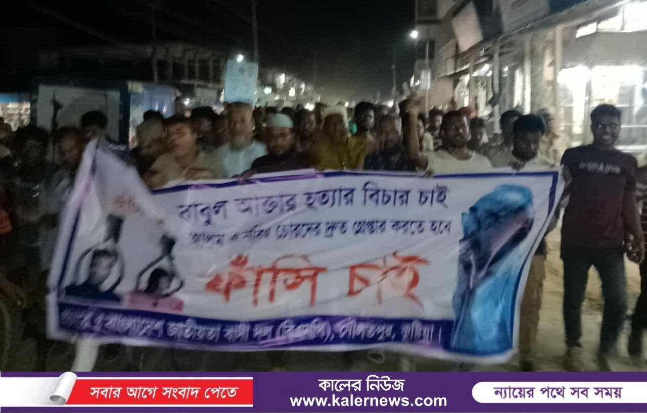 দৌলতপুরে বিএনপি নেতা খুনের প্রতিবাদে বিক্ষোভ মিছিল দৌলতপুর কুষ্টিয়া প্রতিনিধিঃ কুষ্টিয়ার দৌলতপুরে জমি সংক্রান্ত বিরোধকে কেন্দ্র করে বিএনপি নেতা বাবুল আক্তার (৫৯) খুনের ঘটনায় দোষীদের আইনের আওতায়
