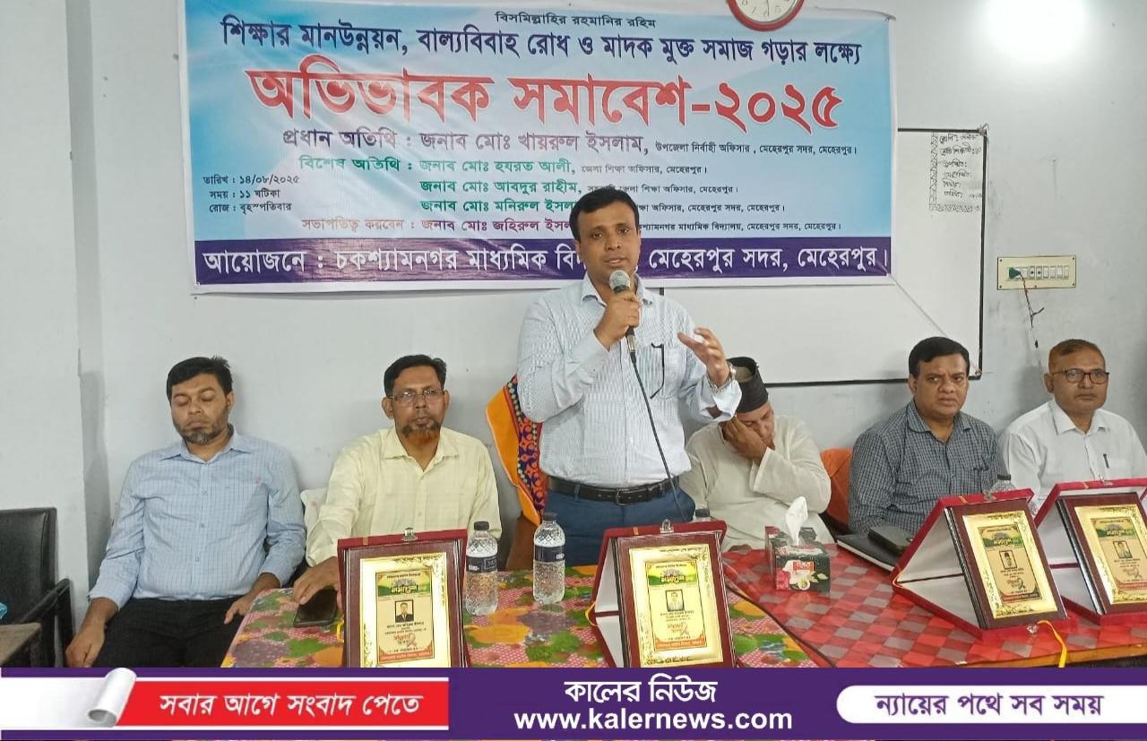 মেহেরপুর প্রতিনিধি-মেহেরপুরে শিক্ষার মানউন্নয়ন, বাল্যবিবাহ রোধ ও মাদক মুক্ত সমাজ গড়ার লক্ষ্যে অভিভাবক সমাবেশ অনুষ্ঠিত হয়েছে। বৃহস্পতিবার সদর উপজেলার চকশ্যামনগর