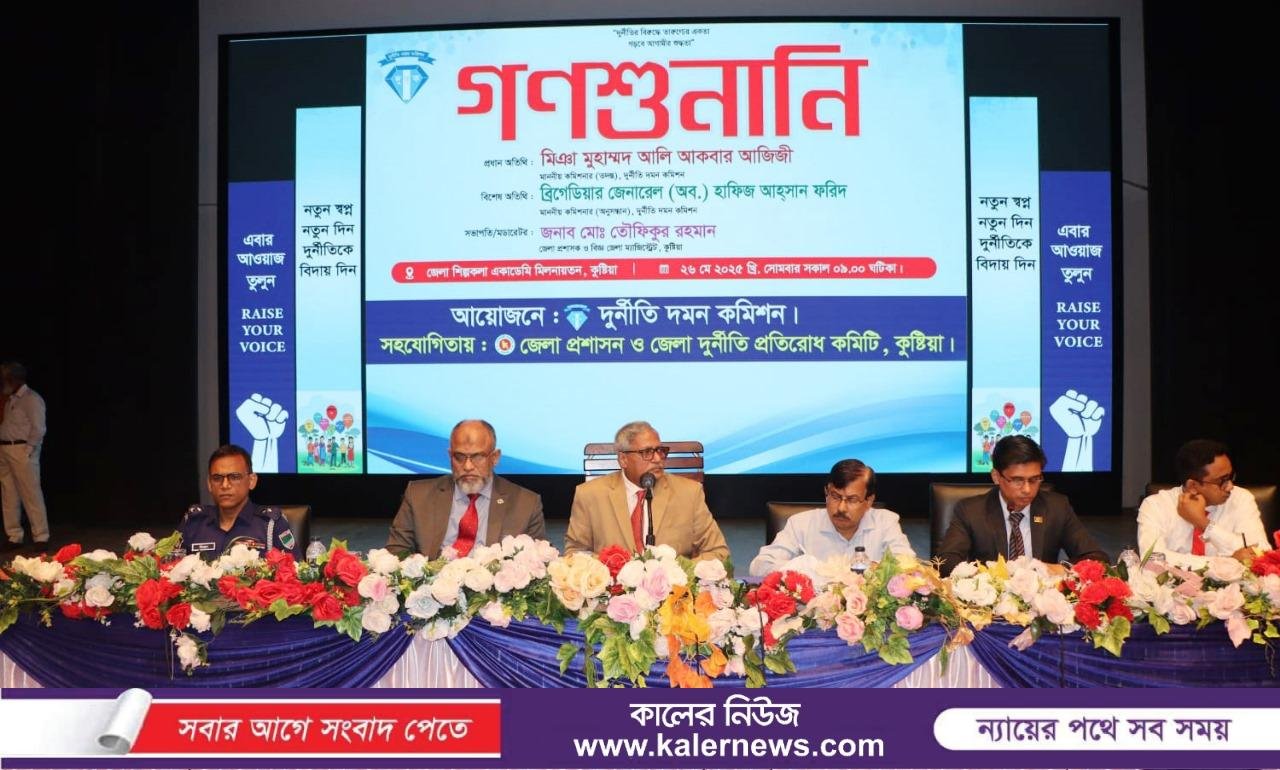 কুষ্টিয়ায় দুদকের গণশুনানি অনুষ্ঠিত কে এম শাহীন রেজা কুষ্টিয়া জেলা প্রতিনিধি -‘দুর্নীতির বিরুদ্ধে তারুণ্যের একতা গড়বে আগামীর শুদ্ধতা’ এই প্রত্যয়ে কুষ্টিয়ায় দুর্নীতি দমন কমিশন