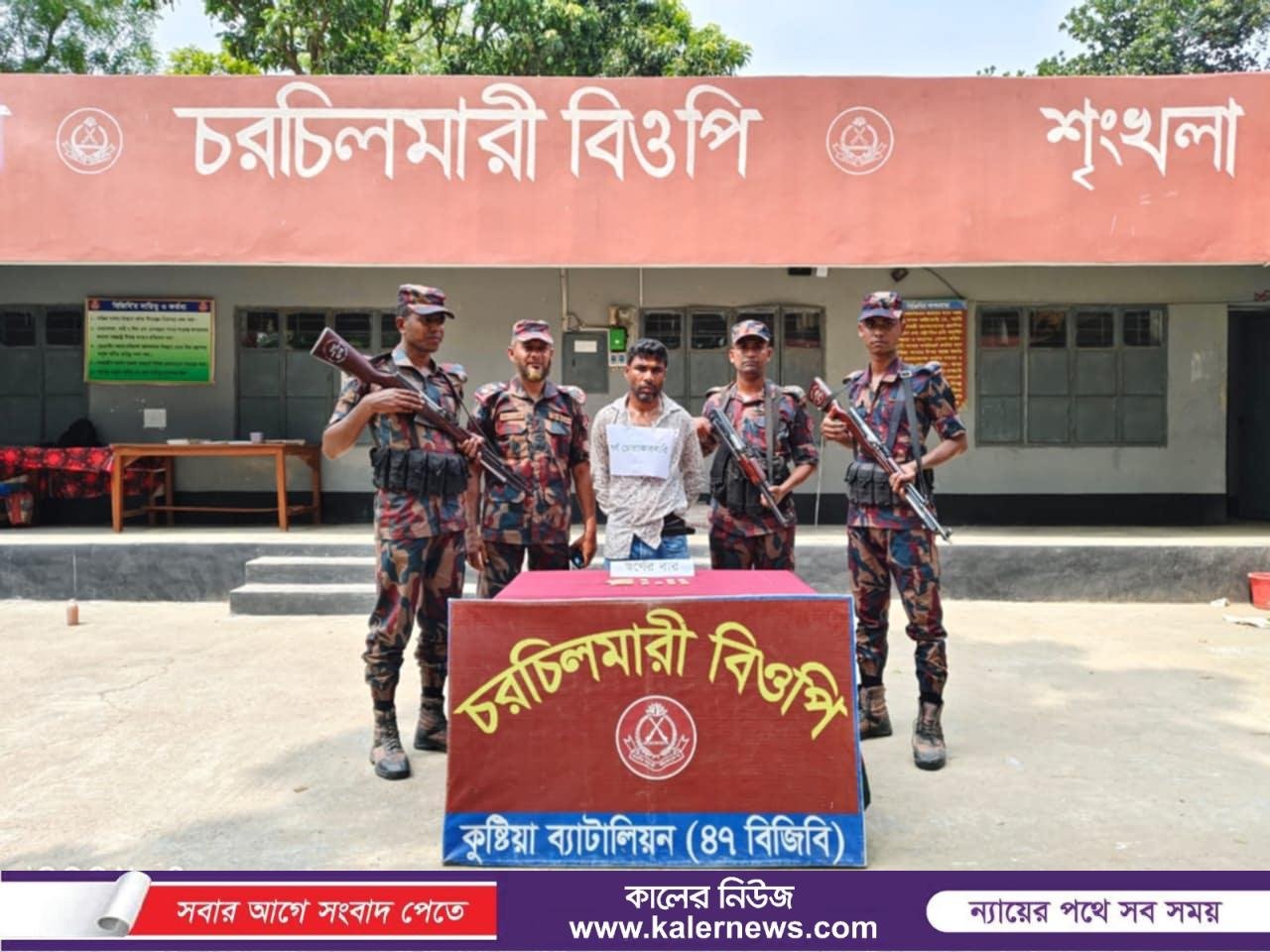কুষ্টিয়া দৌলতপুর সীমান্তে দুই কোটি টাকার স্বর্ণ উদ্বার: আটক ১ দৌলতপুর (কুষ্টিয়া) প্রতিনিধি: কুষ্টিয়ার দৌলতপুর সীমান্তে বর্ডার গার্ড বাংলাদেশের (বিজিবি’র) অভিযানে ১ কেজি ৩৪০ গ্রাম স্বর্ণসহ শ্রী রপন মন্ডল (৪২)